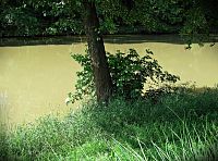 Rybník Žabinec je na březích zarostlý rákosem a jeho hladinu v celku nevidět, zaujal ale mokřad u odpočívadla, z něhož mi ku svačině krátký koncert zapěly kvákající žáby.