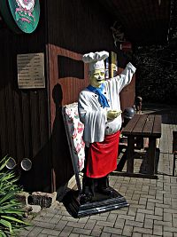 Cestou do centra Salaše jsem minul hezký svatý obrázek umístěný na dřevěném sloupku a zatím zavřený kiosek „Občerstvení U Vaňků.“ Na rozcestí tur.tras jsem po zelené vyběhl ze zástavby na okraj lesa, kde se jen kousíček od značky nacházalo dno pískovcového lomu.