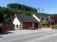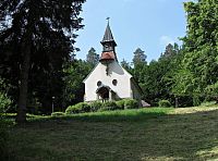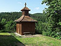 Kaple sv.Jana Nepomuckého se vypíná ve svahu lučiny a byla vystavěna za první republiky v roce 1933. K obci se obrací vysokým štítem se vstupním schodištěm chráněným před slotou obloukovitou střechou. Nad vchodem je stěna průčelí po stranách členěna dvěma kulatými okny a úplně nahoře ukončena stříškou chránící sochu Krista na kříži. Nad vstupním štítem yvstupuje věžička s jehlancovitou plechovou střechou, pod ní je směrem k obci umístěný ciferník hodin a pod nimi se nachází zvonové patro. Vchod byl za mé návštěvy otevřen a přes mříž si bylo možno prohlédnout interiér, nad jehož oltářem je umístěna socha sv.Jana Nepomuckého.