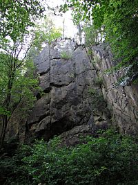 Jeden takový a již dávno opuštěný je možno si prohlédnout právě poblíž středu dědinky. Jeho dno sice tvořila blátivá prohlubeň, ale když jsem ji po straně obešel, stanul jsem pod impozantní a více jak deset metrů vysokou lomovou stěnou. Velmi zajímavé uskupení vrstev pískovců se nacházelo i na pravé boční nižší stěně, jenže tato už byla v minulosti narušena těžbou.