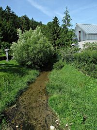 Tady v Salaši jsem si ještě pod kaplí prohlédl Pomník obětem 1. a 2.světové války. Poté jsem seběhl dolů do obce a pokračoval po silnici až na její konec, odkud mne žlutá značka vedoucí po silničce lemující hluboce zaříznuté koryto potoka Salašky povede dál do hor...