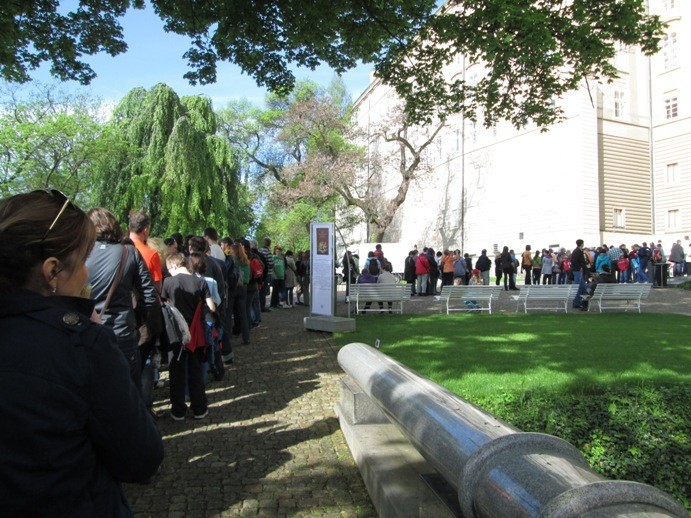 Výstava pro rok 2013 se měla uskutečnit ve dnech 10.-19. května od 9:00 do 18:00 hodin. Pro svůj výlet jsem si vybrala jakožto pracující člověk den volna – neděli 12.5.2013. Z mého nového bydliště na Sázavě u Davle (Praha – Západ) jsem se vypravila vláčkem již v 6:22, protože další spoj jel až v devět, a to už bych dorazila pozdě. Vzhledem k tomu, že „vyhrožovali“ 4-5 hodinovým čekáním ve frontě, tak jsem se obrnila trpělivostí a vybavila knížkou, která mi měla dělat společnost i ve vlaku. Víčka si však nedala říct, a tak jsem dospávala, co jsem v noci nedospala. Po krátkém ranním nákupu v Praze na Hlavním nádraží jsem vyrazila metrem na Malostranskou a poté pěšmo na hrad.