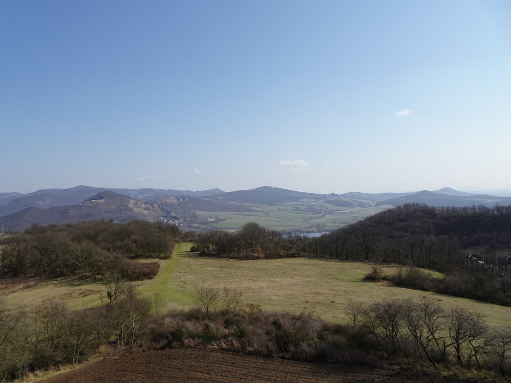 Pohled z rozhledny k západu, na hřbet Krušných hor.