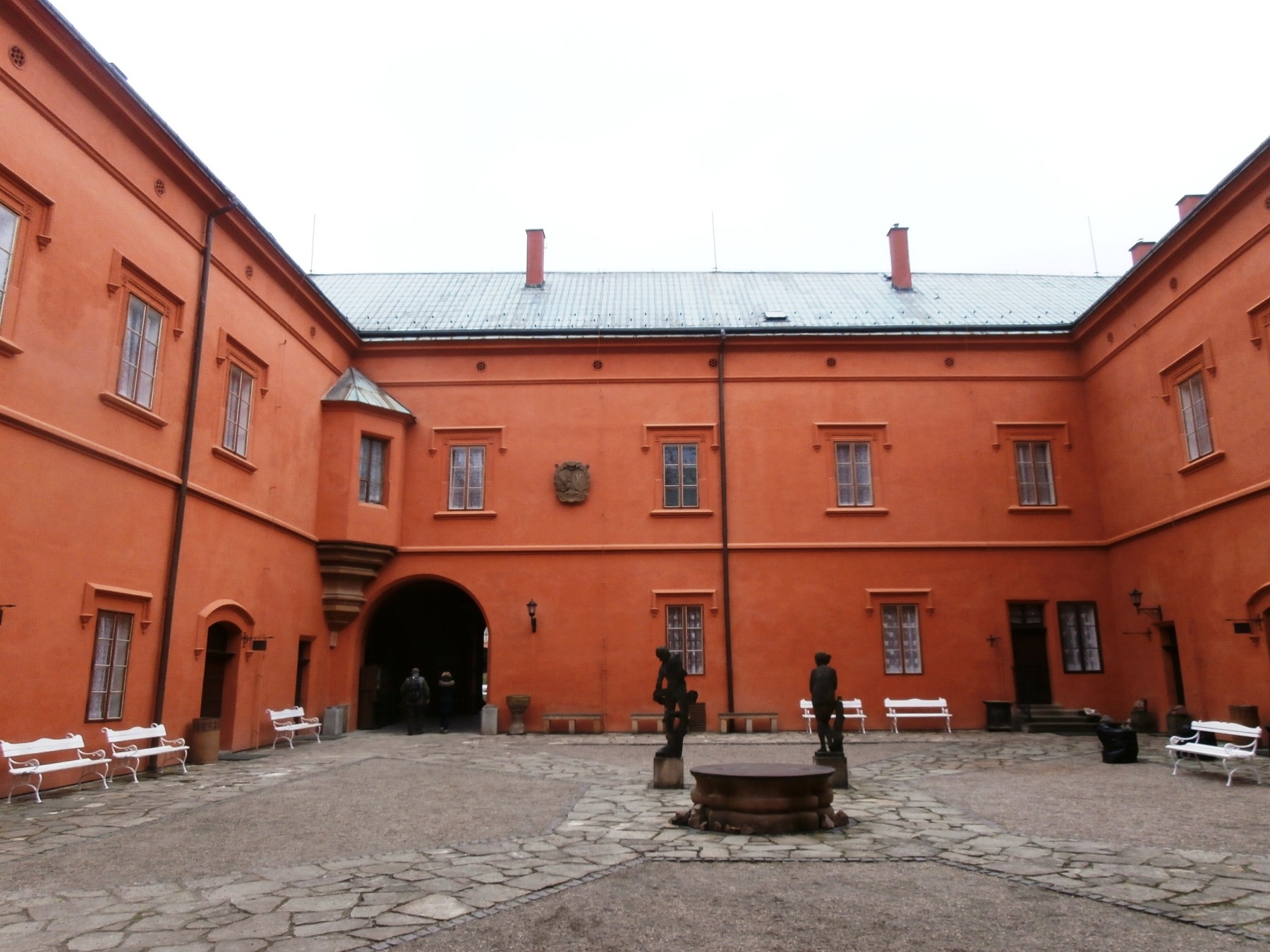 Jak jsem se zmínila v minulém článku, vyšla jsem z výstavních síní, ale ještě ne přímo do parku, ale na zámecké nádvoří. Zámecké nádvoří není veliké, zdobí jej volně stojící sochy Venuše a Merkura. Mají se zde nacházet dva náhrobní kameny Oplů z Fictumu, bývalých to majitelů, ale bohužel jsem viděla jen jeden, druhý jsem nějak přehlédla…