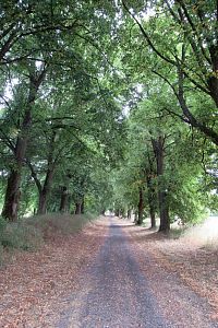 Jdeme téměř stále ve stínu. Cestu lemuje vzrostlá alej. Ta náhle končí, přicházíme do města.