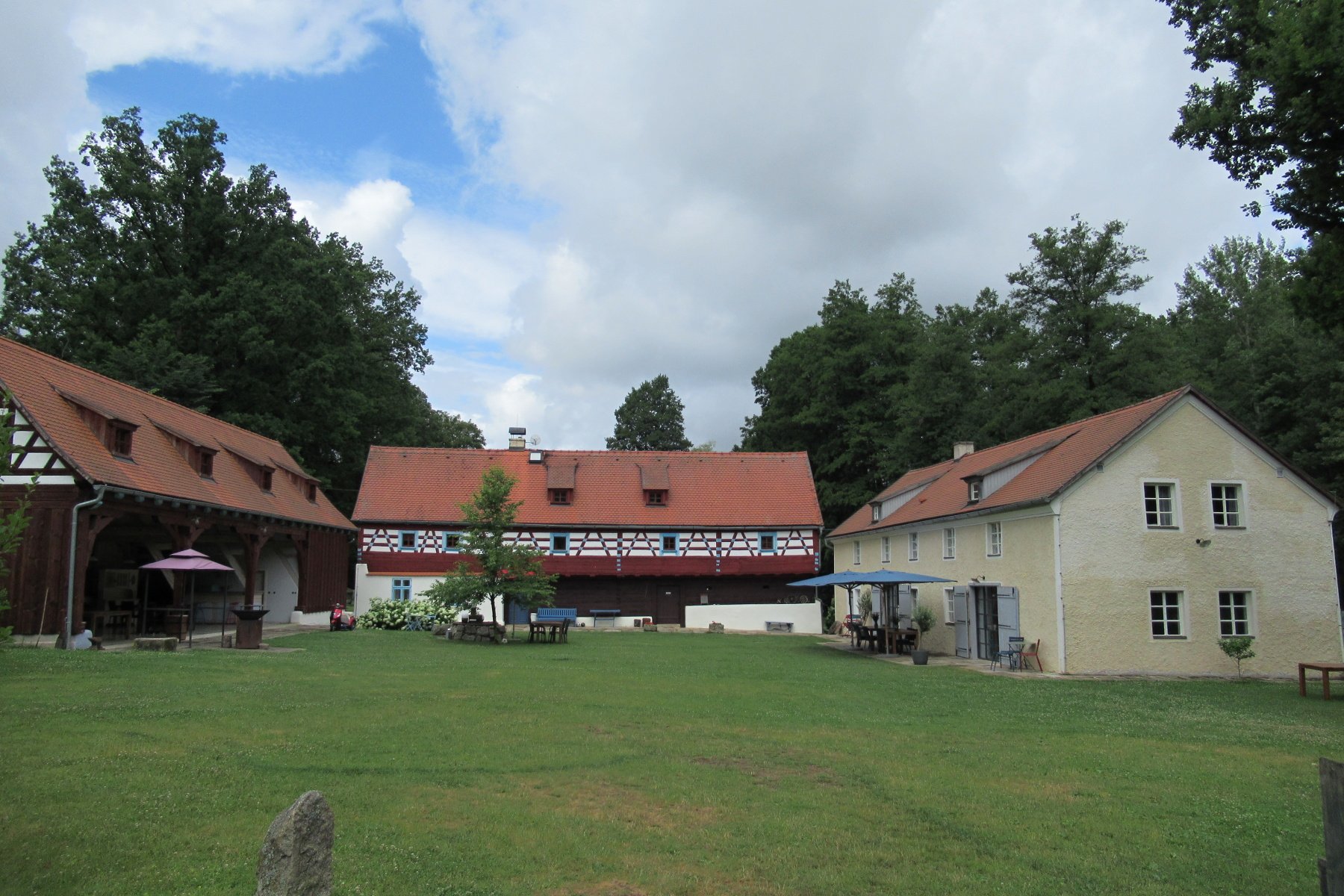 Povalový chodníček nás vrací na silnici. Po chvíli vpravo vidíme krásnou usedlost čp. 9 - bývalý mlýn Gahmühle, který patří k nejcennějším památkám lidové architektury v západních Čechách. Jedná se o mlýn s uzavřeným dvorcem chebského typu ze 17. století. Dnešní podoba hrázděných budov pochází z přestavby ve 2. pol. 18. století. Pila s katrem byla přistavena později. Ty zdobené hrázděné štíty, tady i zdobené hrázděné patro obytného stavení s mlýnicí mne fascinují. Je to krásně udržované, možná čerstvě zrekonstruované. Na předním štítu obytného stavení je umístěn 3,5 m vysoký kříž s dřevěnou skulpturou. Do areálu mlýna patří ještě velká stodola, z vnější strany je obedněná. Na jednom ze sloupů je datace 1764. Prý tam mají mít i zvoničku, ale ta vidět z venku není. V současné době mlýn nabízí ubytování.