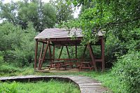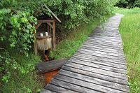 Náhle ze silnice odbočuje povalový chodníček. Kam vede? Jdeme se podívat. Je tam obnovený pramen minerální vody. Samozřejmě ho ochutnáváme. Je to tady hezky upravené, dokonce o kousek dál je i větší přístřešek.