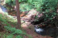Když jsme se pokochali a odpočinuli si, tedy hlavně já, vracíme se po stejné cestě na hlavní trasu naučné stezky. Čekala jsem to horší. Dolů se šlo lépe. Za chvilku jsme byli dole. Konečně jdeme po skoro normální pohodlné cestě.