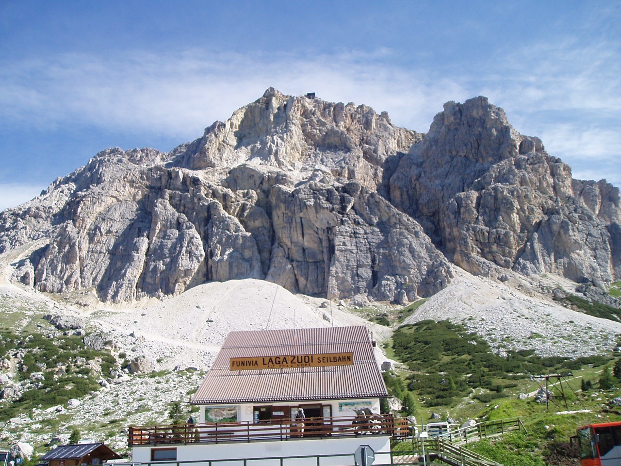 Autem jsme vyjeli do sedla Falzarego /2105 m/ a lanovkou jsme se brzy dostali na vrchol Kleiner Lagazuoi. Po pokochání překrásným rozhledem jsme podle červenobílé značky sestoupili k začátku tunelu, který byl vysekán při bojích v I. světové válce. Tunel je dlouhý cca 1100 m a vede velice strmě dolů, překonává převýšení 400 metrů a místy má sklon až 72 stupňů.Cesta je jištěna nataženým ocelovým lanem. K průchodu je nutná dobrá baterka a vhodná je přilba- lze zapůjčit u dolní stanice lanovky. Sestupuje se kolem skalních oken a uměle vytvořených jeskyní, krátce se také vychází do stěny Hory. Po východu z tunelu jsme již lehce sestoupili zpět do sedla Falzarego.