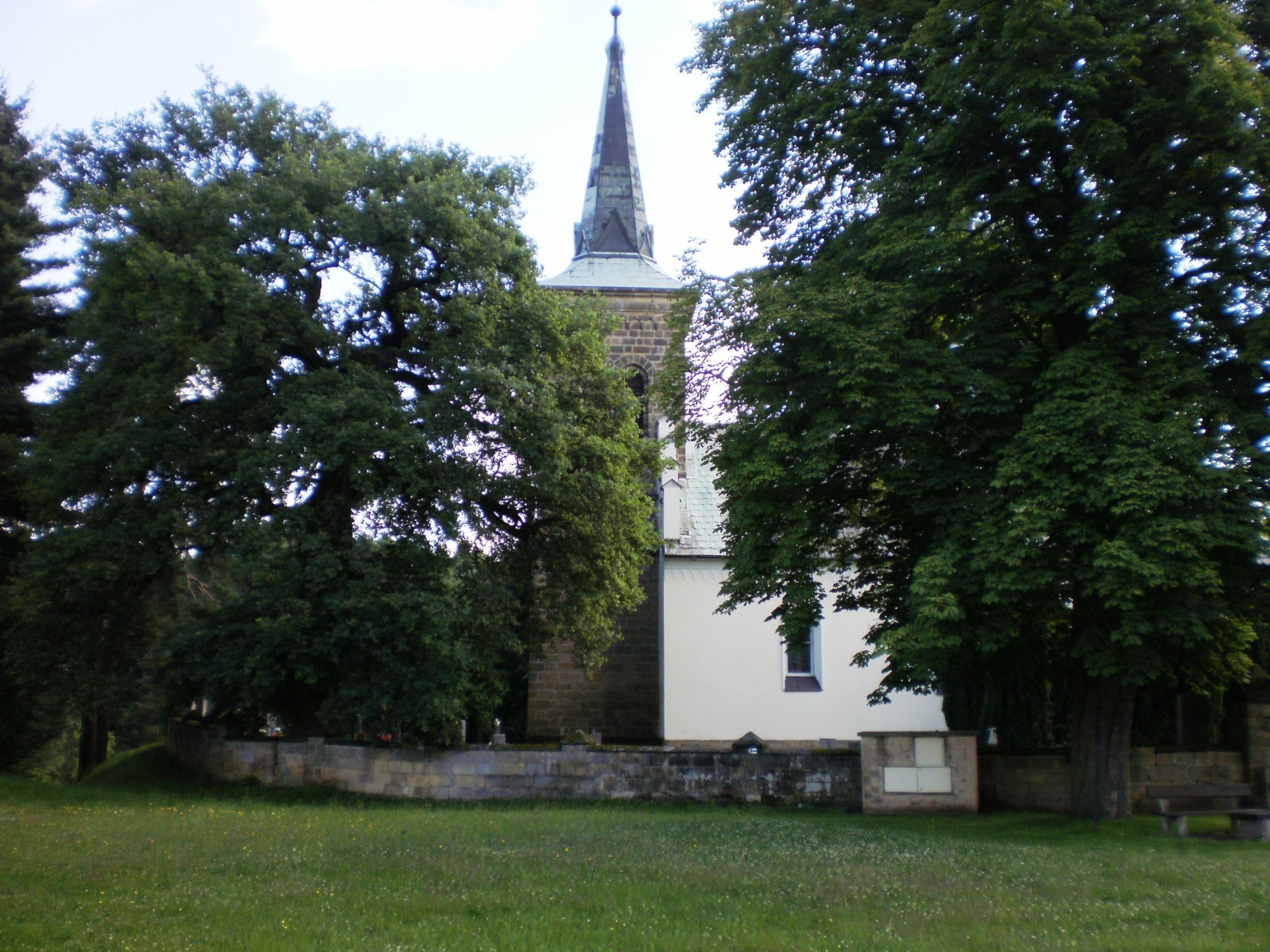První červencový sváteční den, jsem si vybral celkem nenáročnou trasu z Hruboskalska do Malosklalska. Z železniční zastávky Karlovice - Sedmihorky vycházíme na chodník u hlavní silnice po několika metrech přicházíme na křižovatku. Po pravé straně máme krásný pohled na Hruboskalsko se zámkem Hrubá skála a Vladštejn. My ale jdeme pořád rovně po modré značce a za mostkem přes potok odbočíme vlevo na místní komunikaci. Značka nás vede po místní silničce do části Nová Ves ke kostelíku Sv. Jiří, kde na zdi je tabule s historií vsi. Tady se značka stáčí vlevo kolem zdi hřbitova a přicházíme na místní komunikaci, která nás opět dovede na silnici spojující Karlovice s Lestkovem.