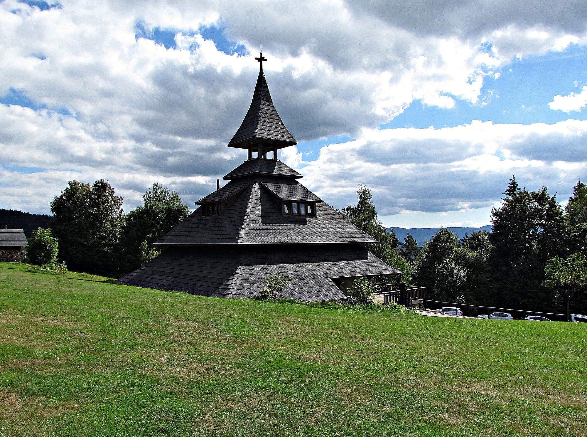 „No, co už – nějak bylo, nějak bude - aspoň že neprší,“ řekl jsem si a zamířil nahoru do stráně k novodobé, velmi pěkné stylové stavbě. Měla podobu masivní dřevěné zvonice a podvrchol Soláně krášlí od roku 2006.