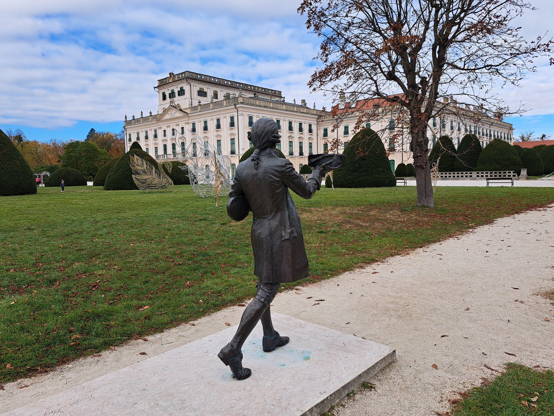 Při pohledu na bronzovou sochu Josepha Haydn si vzpomínám na naši nedávnou návštěvu českého zámku Dolní Lukavice, kde tento hudebník působil.
