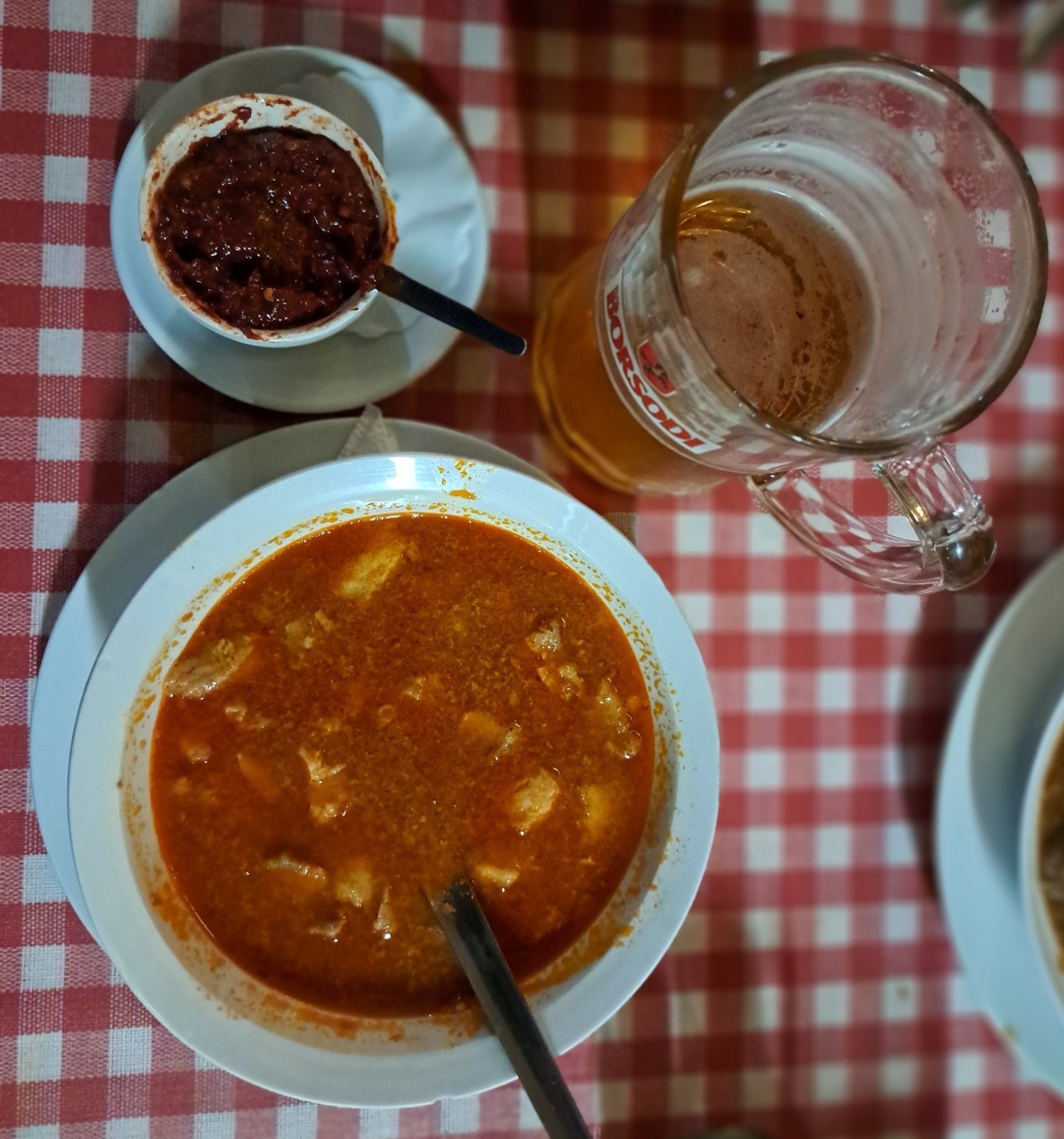 Halászlé, maďarská rybí polévka, charakteristická pro zdejší kuchyň. Výborná záležitost.  autor: Bubinga