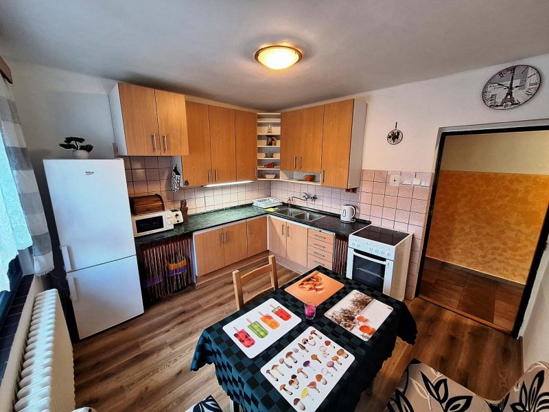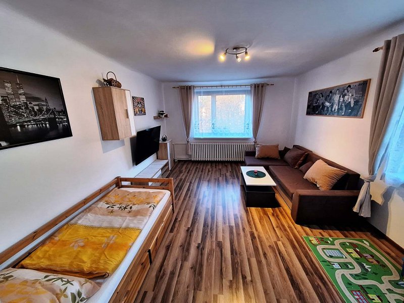 Nabízím ke krátkodobým pronájmům samostatný byt v rodinném domě o velikosti cca 100 m2.Jednotka se nachází v 1.patře zděného RD s parkováním přímo před domem. Byt je nově zrekonstruován a nabízí vše potřebné pro zimní i letní dovolenou. V apartmánu najdete 3 samostatné pokoje, 1x koupelnu s WC a prostorný balkon s krásným výhledem. Dětské hřiště je vzdáleno cca 100m od domu, obchod a restaurace je taktéž v dosahu 5 min. Cena za ubytování obsahuje veškeré poplatky a je konečná. Domácí mazlíčci povoleni a pro kuřáky je zde již zmiňovaný balkon. Těšíme se na Vás.