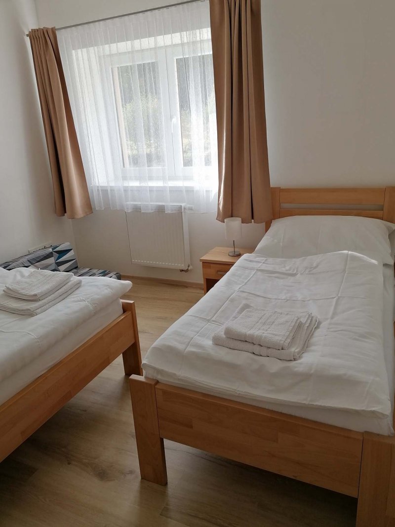 Nový apartmán se nachází v apartmánovém domu v blízkosti lesa v klidné části obce Horní Lipová u říčky Staříč na rozhraní Jeseníků a Rychlebských hor. Město Jeseník je vzdáleno necelých 10km. Výhodou je dostupnost autem, vlakem (cca 15 min. chůze z nádraží), autobusem (zastávka 150m od budovy). Možnost parkování přímo u vchodu pro vynesení zavazadel, pak umístění vozu na místo na parkovišti podle čísla apartmánu. Apartmán se nachází na 2.podlaží. K dispozici je výtah. Kola nebo sportovní vybavení je možné uložit v uzamykatelném sklepním boxu v přízemí. Z balkonu je výhled do přírody. Byt poskytuje veškeré potřebné zázemí pro krátkodobé ubytování. Okolí apartmánu nabízí vyžití v každém ročním období - turistické a cyklistické stezky, ski areály, běžkařské trasy, kulturní vyžití ve městě Jeseník - kino, divadlo, koncerty, lázeňství.