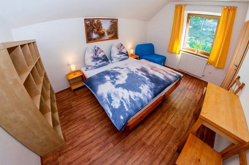 Apartmán v obci Hořejší Vrchlabí: 1 ložnice, celkem pro 1 až 2 osoby. Orientační cena (za apartmán za noc): celoročně 2.300kč.