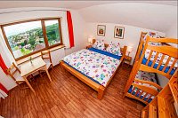 Nově otevřeno!! Na léto 2026 akční cena na týdenní pobyt 25000,- Kč při obsazenosti 6 osob (možno i s 2 přistýlkami pro děti). Prostorný, nadstandardněd vybavený Apartmán Anděl je umístěn v podkroví Chaty Anděl s překrásným výhledem, velkou lesní zahradou, bazénem a dětským hřištěm a je vhodný pro ubytování 1 - 2 rodin, které hledají soukromí, čisté prostředí a pohodlí. Každý pokoj má vlastní koupelnu, k dispozici je perfektně zařízená kuchyně, sušárna bot, pračka se sušičkou. Hosté mohou využívat zahradu. Chata se nachází na Jankově kopci nad Vrchlabím na území Krnap. Poloha objektu je výborná pro všechny, kdo si chtějí odpočinout při pobytu v přírodě na čistém vzduchu, ale přitom mít výhody města stále na dosah. Do centra města se pěšky dostanete za 10 minut, nejbližší restaurace je 5 minut chůze od domu. Nejbližší vlek Kněžický Vrch je 3 minuty autem, Herlíkovice 5 minut, Špindl do 20 minut. Přímo za domem začíná les a louka (bývalá sjezdovka) skvělá na sáňkování nebo i snb skokánky a malé lesní hřiště s mnoha herními prvky pro děti i dospělé. Parkování přímo u domu, ohniště, gril, uzamykatelná lyžárna na příjezdu, wifi zdarma po celém objektu. Majitelé sice bydlí v objektu, ale hosté jsou v podkroví v naprostém soukromí.