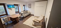 Apartmán Arnika nabízí ubytování přímo u sjezdovky Severák v Jizerských horách. Je ideálním místem pro rodiny s dětmi, páry i sportovně založené návštěvníky – ať už plánujete aktivní dovolenou nebo klidný víkendový pobyt v přírodě. Moderní apartmán v prvním patře nově zrekonstruované horské chaty Arnika nabízí vysoký standard ubytování s atmosférou Jizerských hor. Dispozice 1+kk, kapacita až 4 osoby, přímý výhled na sjezdovky Severáku a praktické vybavení z něj dělají ideální místo pro víkend i delší dovolenou či bydlení. Interiér je vzdušný a variabilní: přes den nabízí dostatek prostoru k jídlu, práci i relaxu, večer pohodlí díky výklopné posteli a rozkládací pohovce.