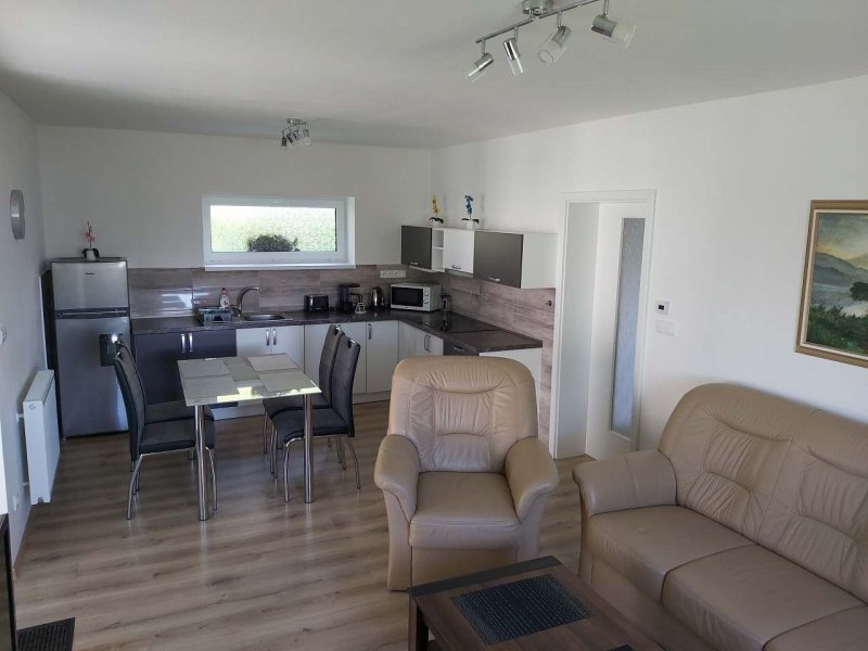 Nabízíme k pronájmu pro vaši rodinnou dovolenou příjemný apartmán 3+kk v nově postaveném rodinném domku.