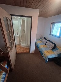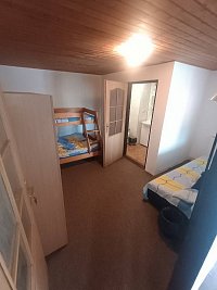 Ubytování v bývalé hospodě v Chlumětíně v pokojích s koupelnou a WC a apartmánu.