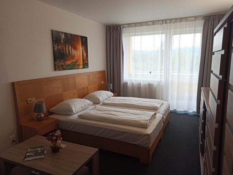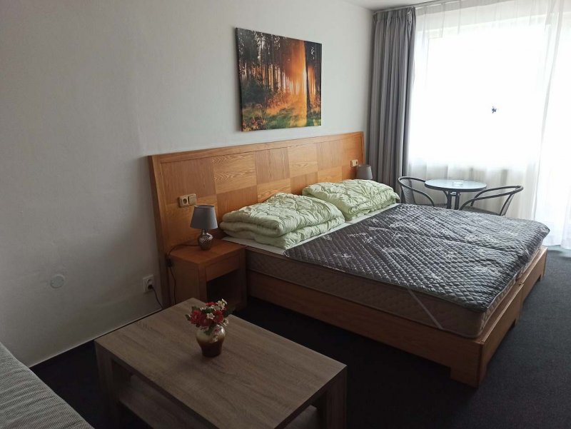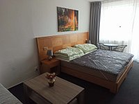 Soukromý apartmán se nachází v areálu Wellness hotelu ve Frymburku, má velikost 30m² a kromě hlavního pokoje disponuje vstupní chodbou, koupelnou a balkonem. Ke vstupu do apartmánu slouží čipové karty, která jsou vydávány při příjezdu na recepci hotelu. V ceně ubytování je zahrnuta ubytovací taxa a úvodní a závěrečný úklid. Na recepci hotelu je možno domluvit zakoupení polopenze. Veškeré služby hotelu jako aquapark, wellness, svět pod hladinou apod. nejsou zahrnuty v ceně ubytování.