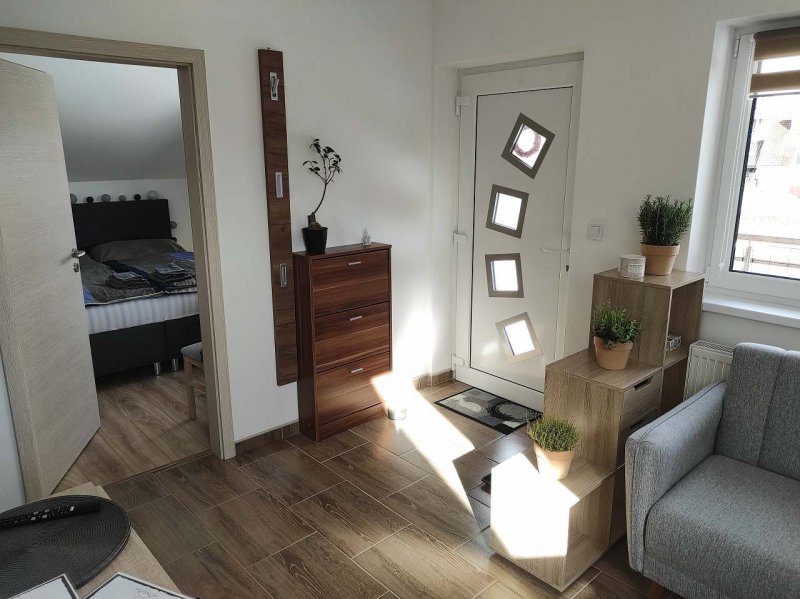 Apartmán v obci Frymburk: 2 ložnice, celkem pro 2 až 6 osob. Orientační cena (apartmán za noc): celoročně 2.600kč.