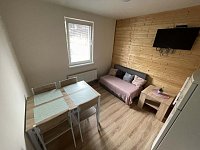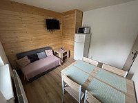 Nově zrekonstruovaný objekt s oploceným pozemkem. Dojezd po silnici až k objektu, kde je rovněž možnost parkování. Apartmán má samostatný vchod a jeho součástí jsou 3 pokoje (4,3,2 lůžka), kuchyňka s elektrickým sporákem, konvicí, mikrovlnkou, lednicí a vybavením (hrnce, pánve, talíře, hrnky, sklenice). K dispozici je v apartmánu wc a koupelna se sprchovým koutem a umyvadlem, obojí rovněž nově zrekonstruované. Ve společenské místnosti je jídelní stůl se židlemi, sedací souprava k posazení a TV (Skylink). K dispozici je wifi. Postele jsou povlečené a každý ubytovaný má k dispozici ručník. Apartmán je nekuřácký. Na zahradě jsou k dispozici skluzavky pro děti, houpačky, pískoviště, trampolína a lavičky k posezení. Je zde i ohniště a možnost si zapůjčit gril. K dispozici je rovněž sauna a vířivka, které jsou ale vzhledem k vysokým cenám energií zpoplatněné. Objekt je vhodný např pro dvě rodiny, nebo skupinu přátel. Okolní příroda je nádherná, je zde možnost kratších i delších výletů, rozhledny, lanový park na Plešivci, cyklotrasy, běžecké trasy a několik skiareálů s možností učitele lyžování pro děti.