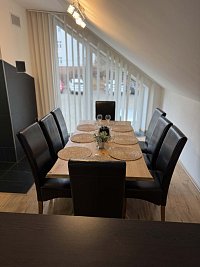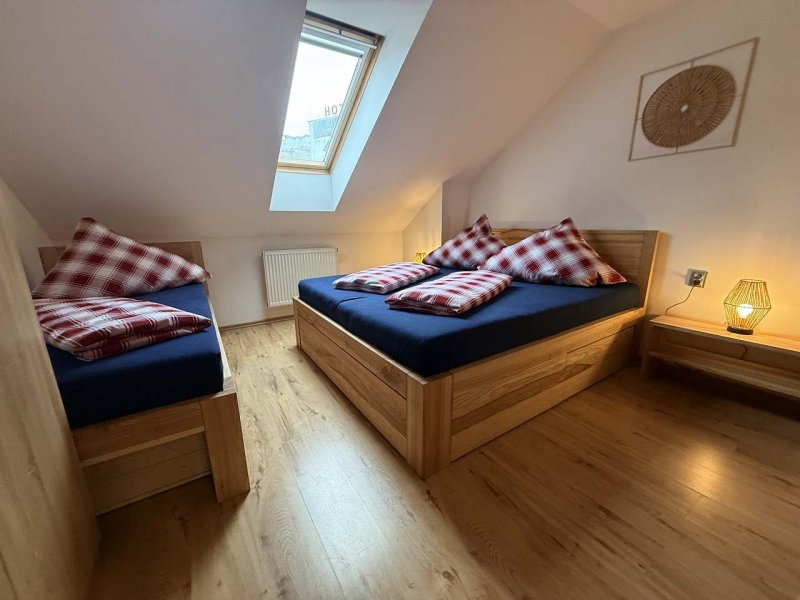 Představujeme Vám nově otevřený Apartmán Ledo v centru Jizerskohorského městečka Tanvald na úpatí Jizerských hor a Krkonoš ideálním místě pro vaši horskou dovolenou. Nabízíme moderní, prostorné a útulné ubytování o rozloze cca 90m², které pohodlně pojme 6 až 8 hostů. Apartmán je skvěle uzpůsoben jak pro rodiny s dětmi, tak pro skupinu přátel, kteří hledají komfortní zázemí v krásném prostředí Jizerských hor. Dispozice zahrnuje dvě samostatné ložnice, velkou společenskou místnost s jídelním koutem, plně vybavenou kuchyní a obývací částí s pohodlným posezením. Samozřejmostí jsou dvě samostatná WC a moderní koupelna, které vám zajistí maximální pohodlí i při plném obsazení. Apartmán se nachází přímo v centru Tanvaldu – v bezprostřední blízkosti obchodů, restaurací, kaváren a vlakového i autobusového spojení. V zimě oceníte rychlý dojezd do lyžařského areálu Tanvaldský Špičák (cca 5 minut autem), v létě zase množství turistických a cyklistických tras přímo od domu. Milovníci běžek, sjezdovek i horských kol si přijdou na své. Rádi ubytujeme i rodiny s dětmi – k dispozici je dětská postýlka i jídelní židlička. Pokud hledáte pohodlné, čisté a dobře vybavené ubytování v srdci Jizerských hor, náš apartmán v Tanvaldu je ideální volbou. Těšíme se na vaši návštěvu!