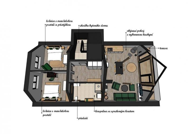 Pokoje: 2 ložnice