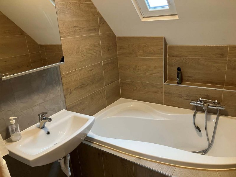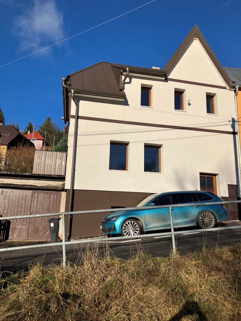 Apartmán Niky 3+kk v Jáchymově po rekonstrukci. V přízemí velká místnost s kuchyní, jídelním stolem a velkým gaučem. Zde si i zapálíte oheň v krbových kamnech. Dále se v přízemí nachází WC a chladná místnost na dřevo s možností uskladnění potravin. Přes tuto místnost se vstoupí na malou zahradu s terasou z wpc prken. Gril samozřejmě k dispozici.