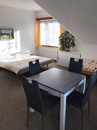 Prostorný apartmán s krásným výhledem do hor je vhodný pro skupiny lidí i rodiny s dětmi.