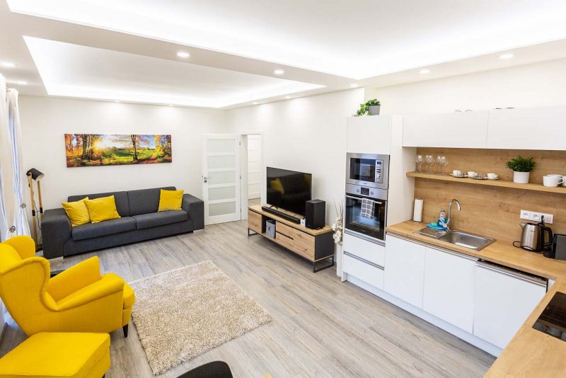 Apartmán se nachází pod spodní stanicí Ski areálu Plešivec. V blízkosti je dále mnoho běžkařských tras. Mimo zimní sezónu je v okolí spousta turistických tras, stezek, cyklo tras s možností pro výlety. Obývací pokoj s plně vybaveným kuchyňským koutem, jídelním stolem, pohovkou, televizí a wifi. Ložnice s manželskou postelí (ložní prádlo, ručníky k dispozici), televizí a vestavnou skříní. Sprchový kout s WC. V celém objektu je vyhřívaná podlaha, topný žebřík v koupelně. Prostorná terasa s výhledem na okolí. K apartmánu patří parkovací stání před domem a soukromá uzamykatelná lyžárna se sušákem na boty.