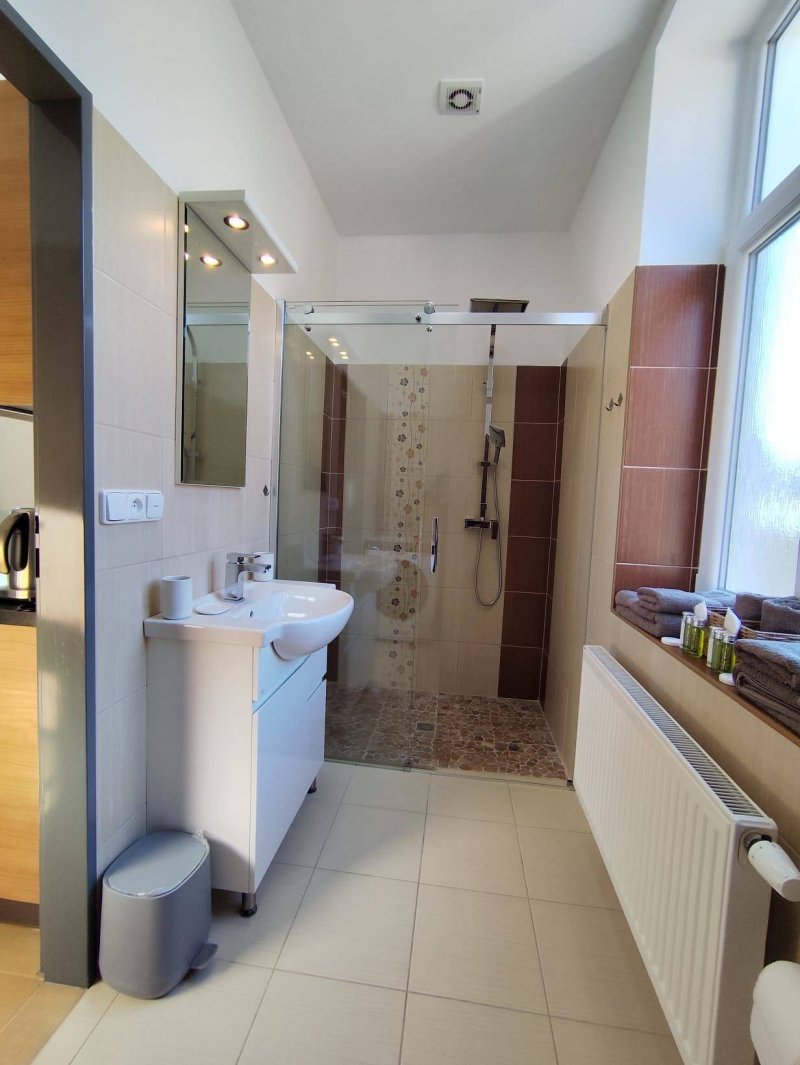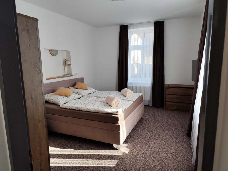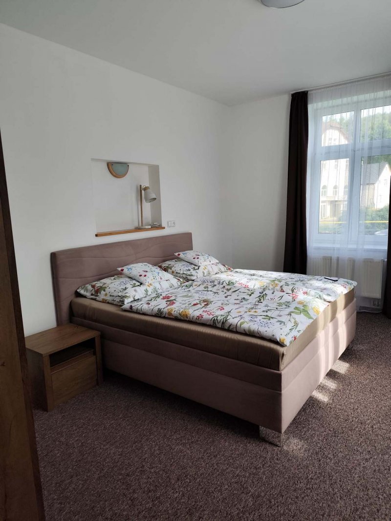 Apartmán u lázní se nachází přímo naproti lázeňskému komplexu Schrothovy léčené lázně v obci Lipová – lázně. Asi jedna minuta chůze Vás dělí od využití lázeňských procedur, procházek po okolí či návštěvy místních kaváren a restaurací. V zimním období je možné využít lyžařský vlek, který se nachází nedaleko od našeho ubytování. Apartmán se nachází v přízemí bytového domu, který byl postaven roku 1926 a původně sloužil jako soukromý lázeňský dům rodiny Neugebauerových. Check - in probíhá v den ubytování od 14: 00 a check - out v den odjezdu do 10: 00 – po dohodě můžeme tyto časy přizpůsobit Vašim potřebám.