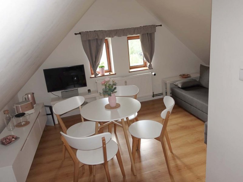 Útulný mezonetový apartmán je umístěn v horské chalupě v srdci malebného Horního Maršova, kde vás ráno probudí zpěv ptáků, zvuk zurčícího potoka a vůně lesa. V zimě si užijete skvělé lyžování a zimní sporty vč. běžkařských tras na dosah ruky, v létě cyklotrasy, turistiku a čistý horský vzduch v srdci Krkonoš. Přijeďte si odpočinout a načerpat novou energii. Velkým bonusem apartmánu je výhled z každého pokoje do okolní krajiny.