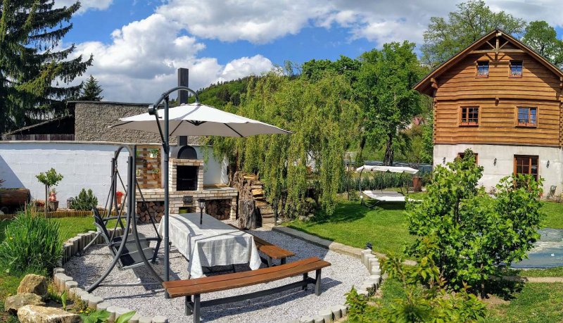 Chalupa v obci Mladé Buky: 4 ložnice, celkem pro 1 až 12 osob. Orientační cena (chalupa za týden): celoročně 48.000kč.