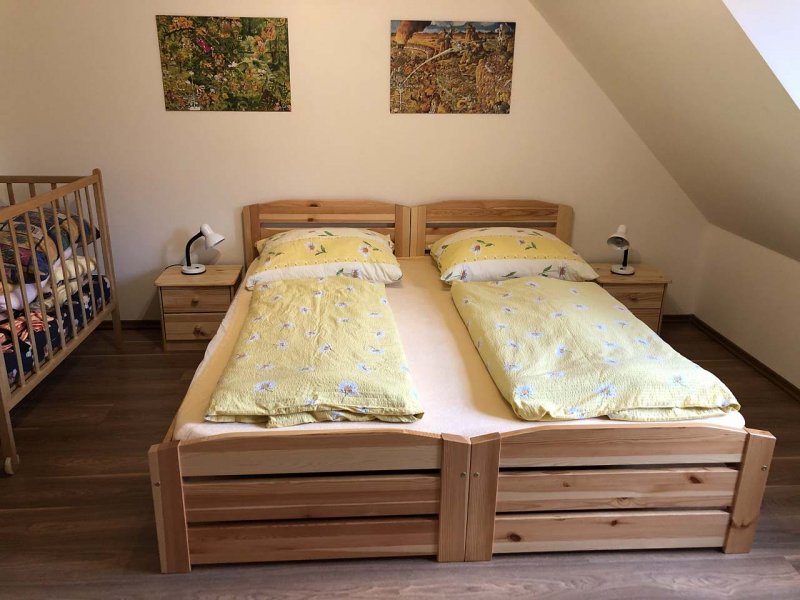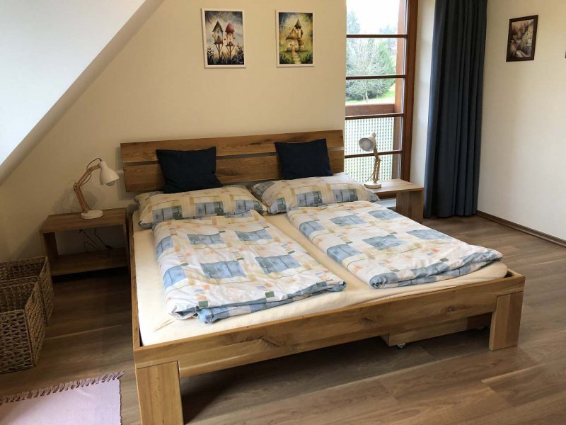 Apartmán v obci Říčky v Orlických horác: 2 ložnice, celkem pro 2 až 7 osob. Orientační cena (za apartmán za noc): léto 2.000kč, zima 3.000kč.