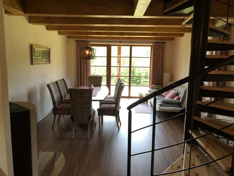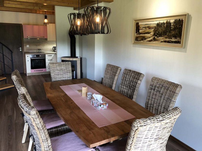Nově postavený mezonetový apartmán je zasazený v krásné horské přírodě, na okraji obce Říčky v Orlických horách. Poskytuje zázemí ideálně pro čtyři, maximálně pro šest dospělých osob. K dispozici je postýlka a nadstandardně vybavená kuchyň. Zařízení apartmánu uspokojí i náročnější klienty.