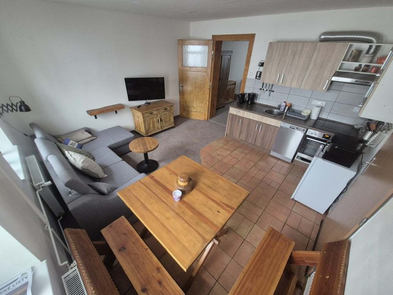 Apartmán v obci Jáchymov: 1 ložnice, celkem pro 1 až 5 osob. Orientační cena (apartmán za týden): celoročně 17.500kč.