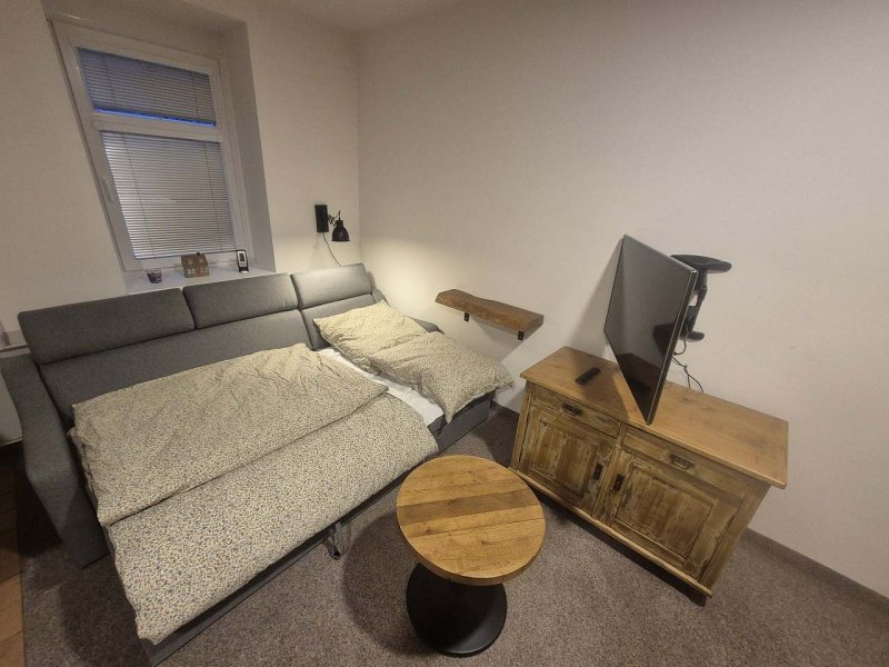 Apartmán v obci Jáchymov: 1 ložnice, celkem pro 1 až 4 osoby. Orientační cena (za osobu za noc): celoročně 550kč.