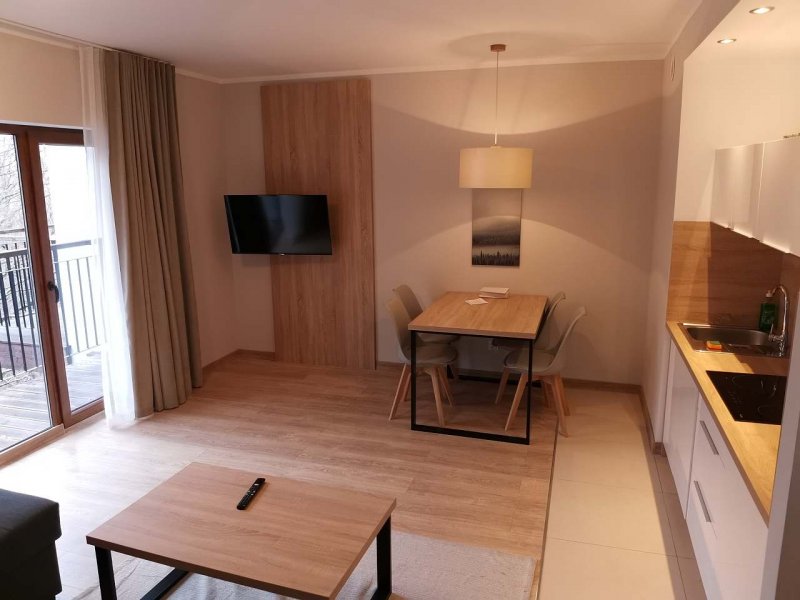 Apartmán v Korunách stromů v obci Szklarska Poręba, 15 km od Harrachova, Vám poskytne zázemí pro vaše oblíbené aktivity v létě i v zimě. K dispozici máte samostatnou ložnici, obývací pokoj s rozkládací sedačkou, kuchyňský kout a koupelnu s WC, terasa. Součástí apartmánu je také kryté garážové stání v suterénu. +