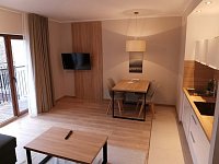 Apartmán v obci Harrachov: 2 ložnice, celkem pro 1 až 4 osoby. Orientační cena (apartmán za noc): léto 3.500kč, zima 4.000kč.