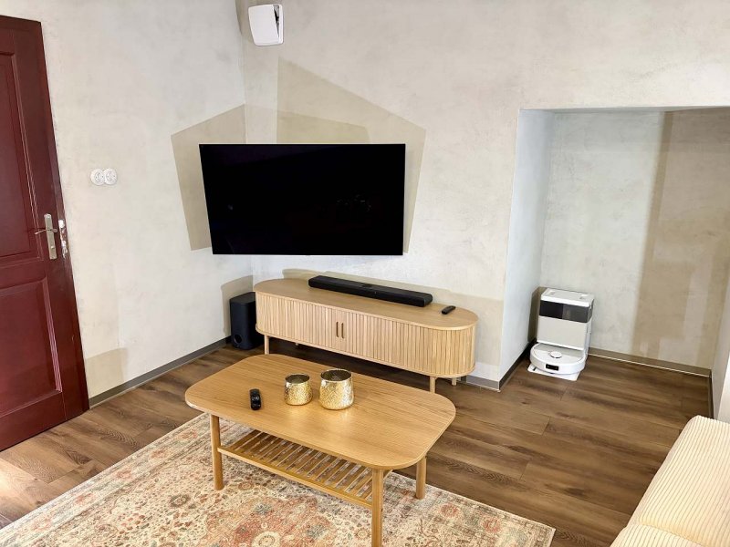 Nově zrekonstruovaný apartmán se nachází v nemovitosti, která prošla celkovou rekonstrukcí a je průběžně udržována ve vysokém standardu jak materiály, tak provedením. Objekt je přizpůsoben jak rekreačnímu využití, tak i dlouhodobému pobytu, a to s využitím moderních technologií při zachování charakteru urbanismu dané lokality. Užívání je řešeno i s ohledem na náročnější podmínky v zimních měsících. Nemovitost s apartmánem stojí u boční cesty, resp. silnice, kde je zákaz průjezdu; komunikace slouží pouze rezidentům a návštěvníkům.
