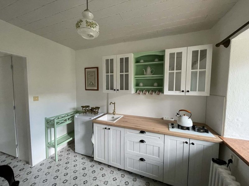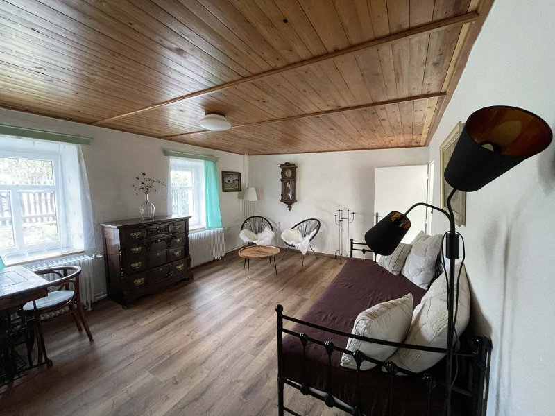 Apartmán se nachází v malebné vesničce Velešov 3km od Větrného Jeníkova. Vesnička je tvořena jen z 8 domů a krásné malé kapličky a skýtá tak příjemný pobyt pro ty, kteří vítají klid a pohodu, i když za kulturou nebo sportem to není daleko. Je zasazena do nádherné a klidné přírody, kousek od lesa, obklopena loukami. Apartmán je tak vhodný pro milovníky přírody ať už v létě nebo v zimě, houbaře, pejskaře, rodiny s dětmi, cyklisty, lyžaře a romantiky. Apartmán je součástí velkého rodinného domu. Má samostatný vchod a je zařízený jako samostatná jednotka, vkusně a s prvky dýchající historií. Dá se pronajímat celoročně. K apartmánu patří zahrádka, na kterou se chodí přes menší dvůr a je k dispozici pouze pro ubytované. Můžete tu strávit příjemný večer u ohně, opéct buřty, poslouchat zpěv ptáků, nebo si dát ranní kávu a dobrou snídani pod pergolou. Zahrádka je ze všech stran uzavřena, tedy je vhodná i pro menší děti. Majitelé mají středně velkého pejska, který je hlavně mazlící a není třeba se ho bát. Máte chuť strávit krásnou dovolenou v malebné části Vysočiny? Tak se přijeďte přesvědčit jak je tu krásně.