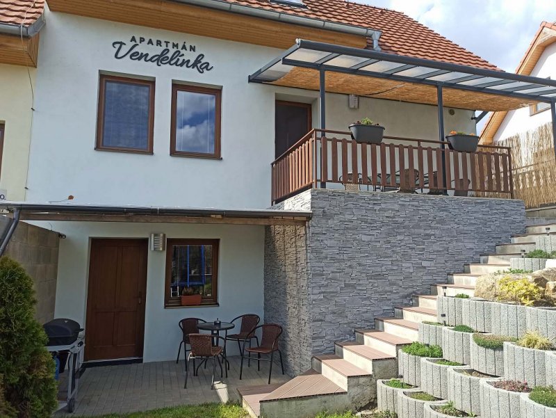 Rekreační dům - Apartmán Vendelínka je samostatný objekt, který je vhodný pro 8 - 11 osob. Příjemný pobyt nabízí jak rodinám s dětmi, tak partě přátel nebo nadšeným cyklistům. Z apartmánu je výhled na kolonádu Reistna a přilehlé vinice. Za domem je zahrada, která nabízí možnost odpočinku Vám a zábavu pro Vaše děti. Zastřešená terasa s posezením a grilem bude to správné na letní večery.