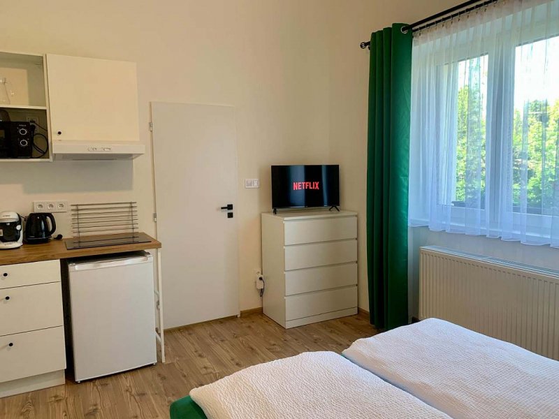 Apartmány 150 leží v srdci moravského Slovácka, v klidné části městečka Uherský Ostroh. Rádi Vás přivítáme v našich apartmánech, kde můžete v klidu relaxovat či vyrazit na výlet. K dispozici je plně vybavený kuchyňský kout s varnu deskou, troubou (dle typu pokoje), lednicí, mikrovlnou troubou, kávovarem Tassimo a s jídelním stolem. Pokoje jsou s manželskou postelí (160cm) a šatní skříní, obývací část s TV - Netflix, internetová TV, kde se nachází rozkládací pohovka (140cm) - dle typu pokoje. Pro nejmenší děti jsou k dispozici hračky, jídelní židlička a v případě potřeby přichystáme i dětskou postýlku. Před domem je i prostor pro parkování osobního auta. K dispozici je i garáž na uskladnění např. jízdních kol.