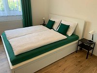 Apartmán v obci Bzenec: 2 ložnice, max. 7 osob. Orientační cena (za osobu za noc): léto 750kč.