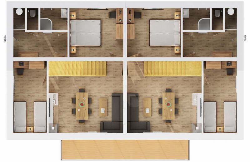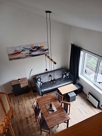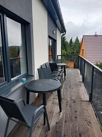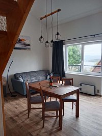 Tato nová dvojchata s apartmány 4 you se nachází na vrcholu chatové oblasti Kobylnice a je tak majestátní nad všemi chatami. Z toho plyne překrásný výhled na Lipenskou přehradu, lyžařský areál Kramolín, stezku Korunami stromů, Slupečnou s bobovou dráhou, to vše vidíte z prostorného balkonu jako na dlani. Vše si užijete v klidu bez rušení ostatních návštěvníků a rachotu vozidel pěkně s nadhledem. Součástí objektu je prostorný pozemek pro hrátky dětí a s parkováním zdarma před chatou s možností grilování na zahradě a uložení jízdních kol pod zámkem dveří.