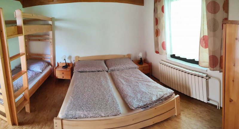 K dispozici jsou dva samostatné apartmány o velikosti 3+1(kapacita 6 lůžek) a 5+1 (kapacita 14lůžek)propojené vstupní halou.
