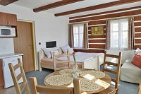 Nabízíme pronájem v poloroubené chalupě v Černém Dole. Dům je situován tak, že lze pronajmout i samostatně pouze jeden ze 2 apartmánů /každý z nich pro 4 osoby/.