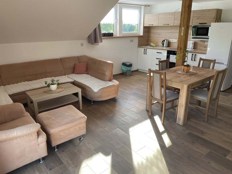 Apartmán v obci Velhartice - Braníčkov: 8 ložnic, celkem pro 1 až 36 osob. Orientační cena (za osobu za noc): léto 1.600kč.